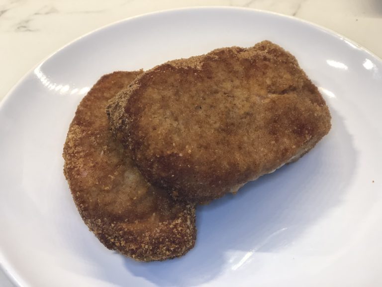 - Dip in water to moisten the pork chops.